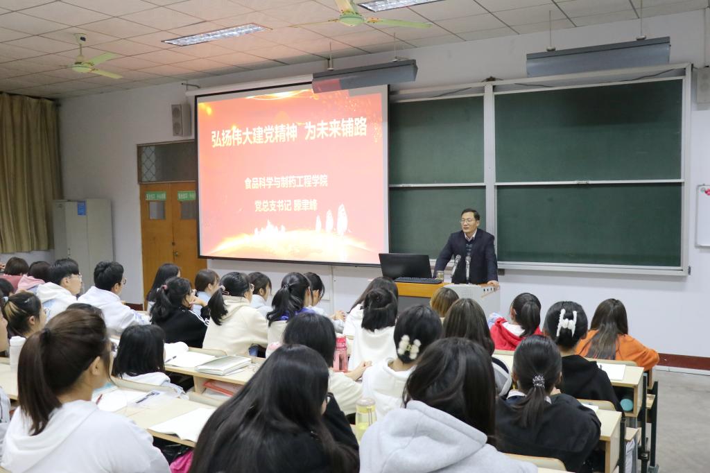滕聿峰讲到,在长期的奋战、建设、发展和实践中,我们党形成了坚持真理、坚守理想,践行初心、担当使命,不怕牺牲、英勇斗争,对党忠诚、不负人民的伟大建党精神,这是中国共产党的精神之源,是中国红色文化的起点,更是指引着我们迈向第二个百年奋斗目标新征程的纲领性文件。作为新时代的大学生,要坚定理想信念,大力弘扬光荣传统、赓续红色血脉,把伟大建党精神永远继承下去、发扬光大。要从伟大的建党精神中,汲取智慧和力量,学好本领,立国志、报国行,勇做堪当民族复兴大任的时代新人。引导同学们在学会做人中,坚持贵在清白,立志做一个德才兼备的人;在做事中,注意培养综合能力,学会理解别人、尊重别人、包容别人;在做学问中,敢于好高骛远,善于实事求是;在困难、挫折面前,要学会面对、敢于承受、勇于战胜和克服。要时刻绷紧安全意识这根弦,保护好自己,在严防严守中筑牢安全底线。