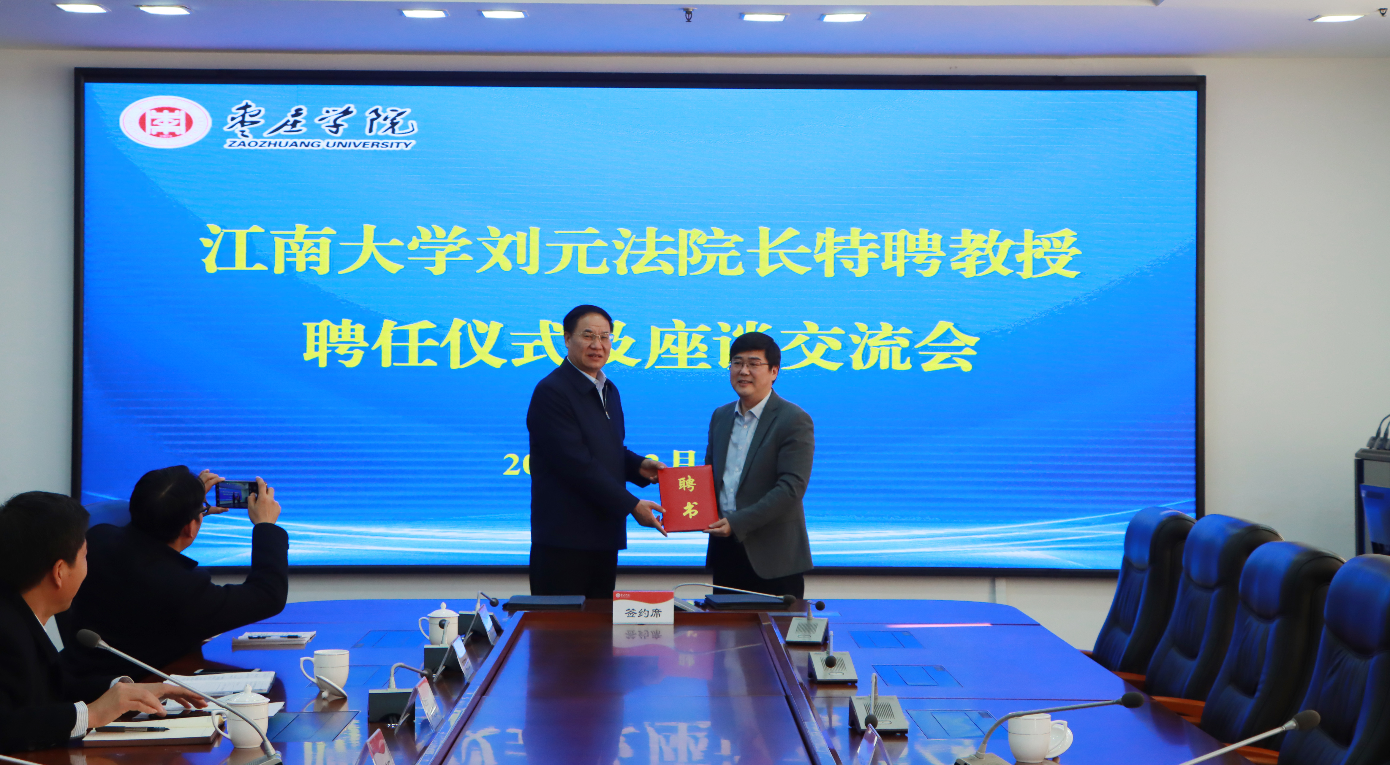 12月24日上午,我校在综合楼三楼会议室举行特聘教授聘任仪式,聘请江南大学食品学院院长刘元法教授担任我校特聘教授。校长李文喜,党委委员、副校长明清河出席,科技处、人事处负责同志,永利23411集团党政领导及教师代表参加活动。