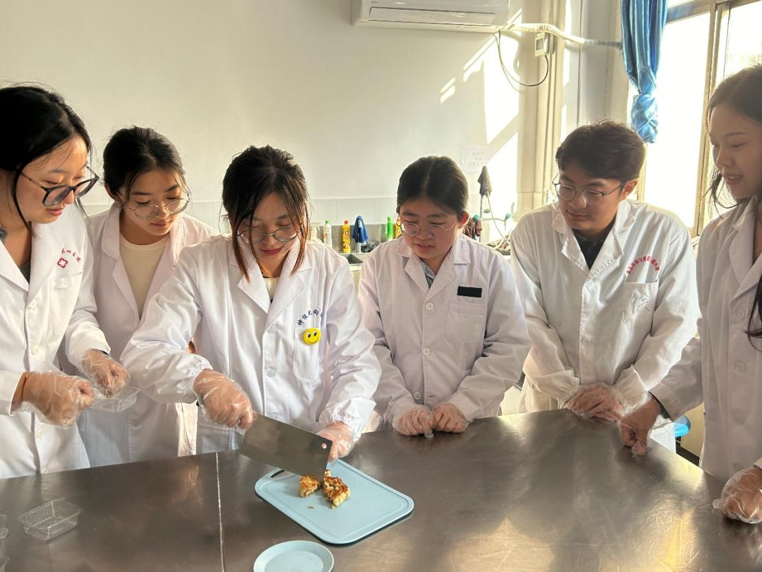“月饼好啦!”大家迫不及待地围了上去。金黄的月饼散发着诱人的香气,咬上一口,外皮酥脆,内馅香甜,满满的幸福感在舌尖蔓延。“同学们做得都很棒,这个双节因为有你们更热闹了。”辅导员班主任们一边品尝着月饼,一边与同学们亲切交流,询问大家的学习和生活情况。从科研难题到校园趣事,从未来规划到节日祝福,师生间的对话温馨又真挚。