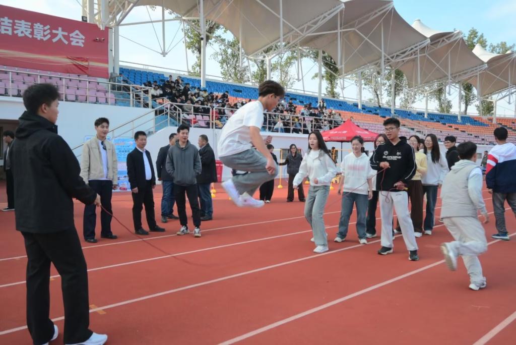 经过近3小时的激烈角逐,运动会在欢乐的氛围中落下帷幕。学院领导为获奖班级与个人颁发荣誉证书,并合影留念。此次秋季趣味运动会不仅丰富了学生的校园生活,更通过协作类项目增强了班级凝聚力,为同学们提供了展现自我、交流互动的平台。学院将持续以体育活动为载体,培养学生“健康生活、团结协作”的成长理念,让青春朝气在运动中绽放,让同窗情谊在协作中升温。