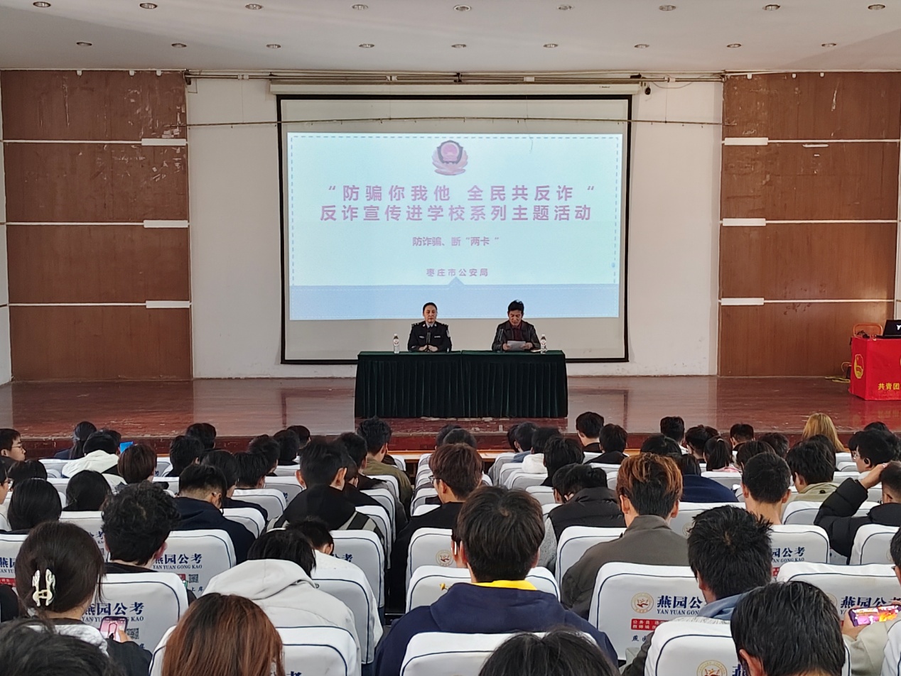 为切实筑牢校园安全防线,提升大学生识诈防诈意识与能力,11月5日下午,永利23411集团联合机电工程学院于文科楼报告厅成功举办"防骗你我他,全民共反诈"主题宣讲活动。本次活动特邀市中区刑侦支队反诈专家聂熙媛教官担任主讲,学院专职辅导员张猛老师主持,300余名2025级新生到场聆听学习。