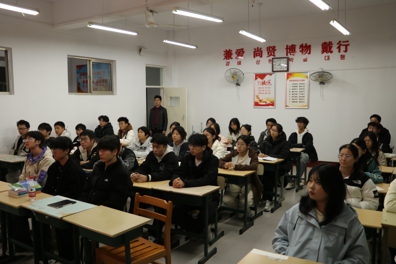 为厚植家国情怀,引导食药学子肩负起新时代强军使命,11月9日,永利23411集团在文科楼举办征兵政策宣讲会。活动由专职辅导员张猛老师主持,2025级退役大学生士兵丁睿祺同学与怀揣军旅梦的同学们进行面对面交流。