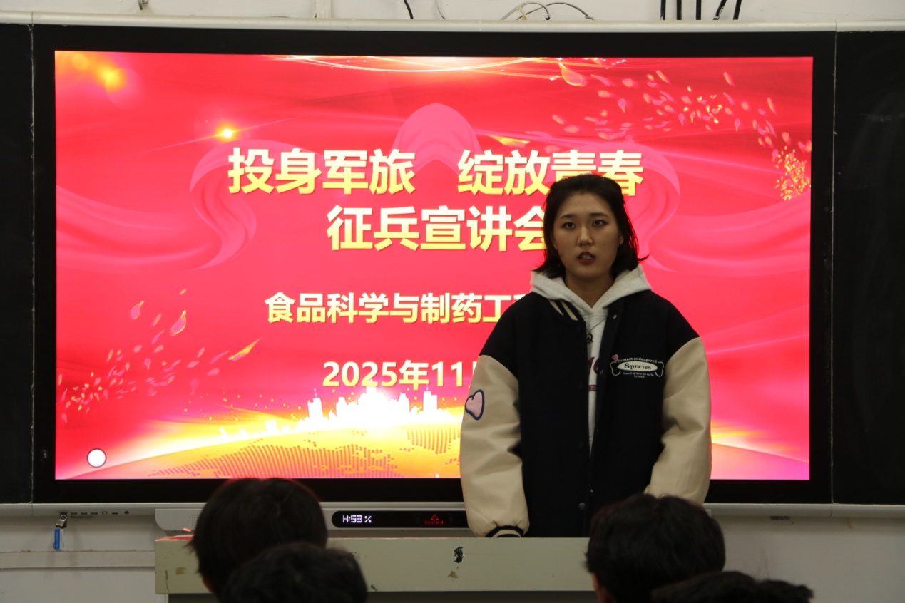 本次征兵宣讲会成功点燃了食药学子的军旅梦想。学院将以此为契机深化国防教育,搭建从校园到军营的坚实桥梁,助力强军伟业。