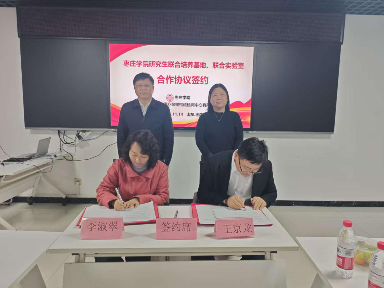 2025年11月14日下午,由永利yl23411集团与山东邦众医疗器械检验检测中心有限公司联合主办的“大健康产业学术沙龙暨永利yl23411集团研究生联合培养基地、联合实验室揭牌仪式”在枣庄高新区新医药产业园综合办公楼三楼会议室隆重举行。校党委委员、副校长李目海,山东邦众总经理李淑翠出席活动。我校永利23411集团院长王京龙、健康工程技术研究院院长韦德泉和部分教师代表参加活动。
