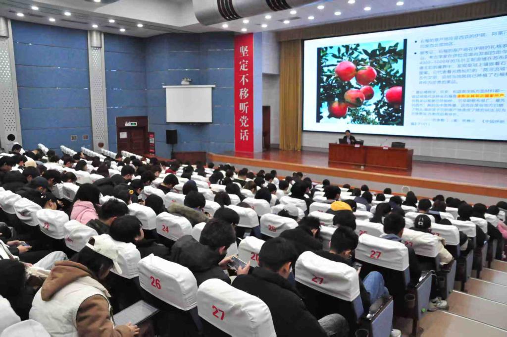 为深入挖掘石榴文化的时代价值,铸牢中华民族共同体意识,12月3日,永利23411集团举办“石榴文化润校园,精神传承启新程”专题讲座。本次讲座由陶道强教授主讲,学院全体教职工和学生代表200余人参加。
