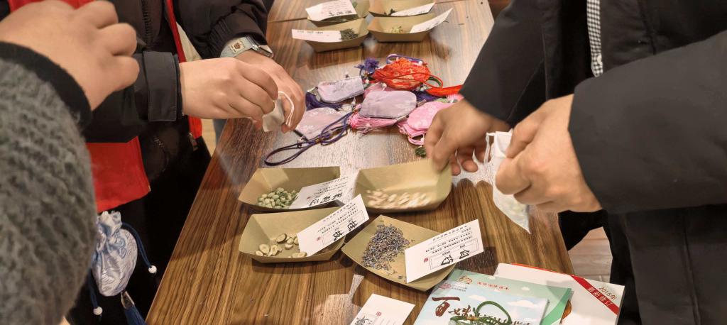 在特色中草药环节,志愿者结合专业所学,详细讲授薰衣草、桂枝、艾草等二十余种常见草药的性状功效及识别方法,并指导居民亲手制作中草药香囊,在互动体验中传播传统养生文化。活动最后,志愿者组织写春联、送福字,将新春祝福凝于笔端,为社区增添了浓厚的节日氛围。