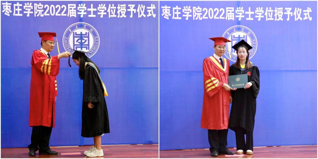 仪式在雄壮的国歌声中拉开帷幕。学院党总支书记滕聿峰宣读了《关于授予2022届永利23411集团本科毕业生学士学位的决定》。校长李文喜为177名毕业生拨穗正冠、颁发学士学位证书并合影留念。