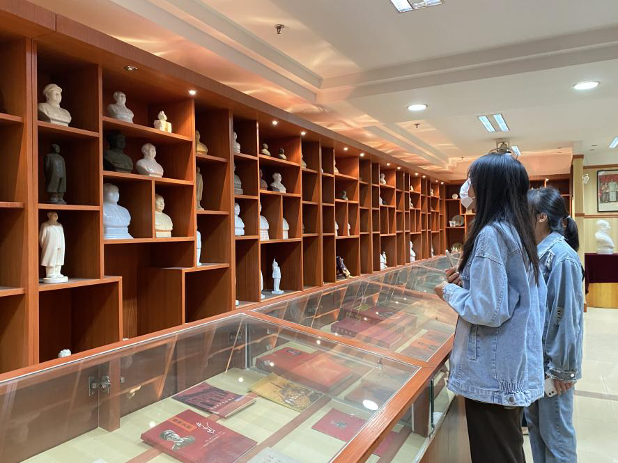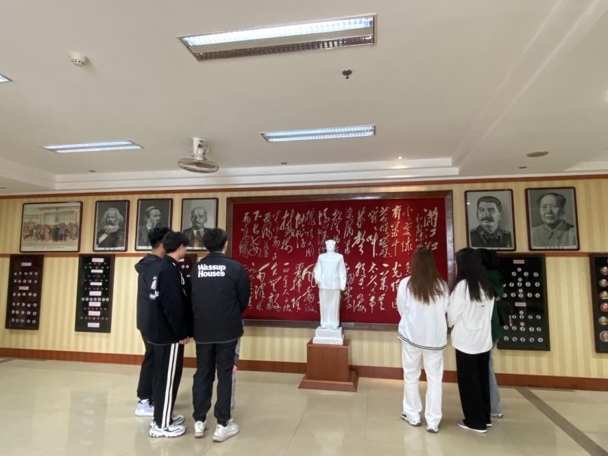 毛泽东文化收藏馆馆长闫和亮详细讲解了馆内藏品的历史和其中蕴含的红色记忆。文化收藏展中共展出毛泽东像章、塑像、摆件、书籍、宣传画等大大小小五万余件文化藏品,每一件都承载着伟人的成长足迹和奋斗历程,蕴含着催人奋进的红色基因和革命力量。同学们边走边看,驻足停留,通过参观学习,切身感受到了一代伟人的伟大智慧和爱国情怀,深切领悟到了新时代青年肩负的责任和担当,心灵受到深深地震撼和启发。
