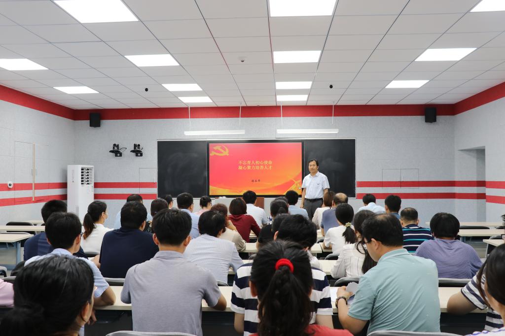党课围绕新中国教育发展的历史、中国特色社会主义教育方针的发展与完善、新中国成立后高等教育的发展、新时代有关教育的重要论述、保障教学中心地位回归育人初心等方面进行讲述。