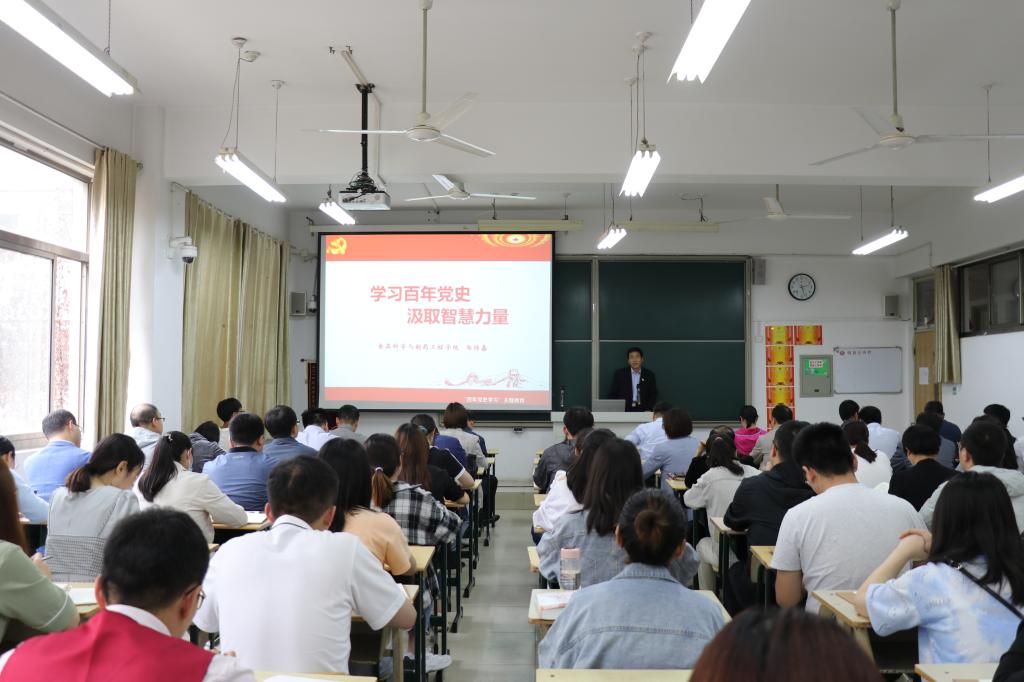 首先,苗素军一行到理工楼2207教室出席指导学院党史学习教育专题党课。专题党课以“学习百年党史,汲取智慧力量”为题,由永利23411集团党总支书记郭传鑫担任主讲,学院全体教职工和学生党员参加。