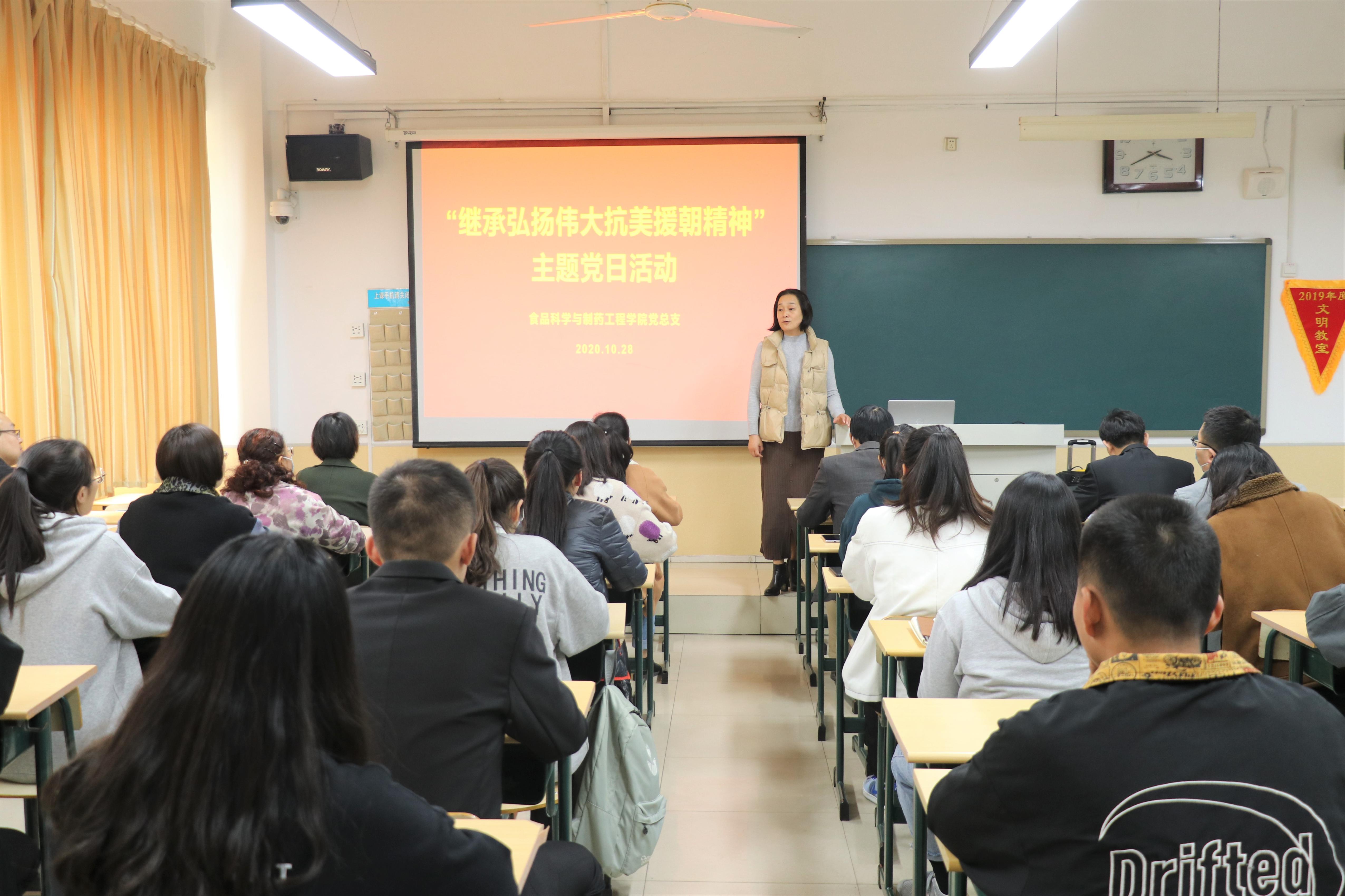 10月28日下午,学院党总支组织全体教工和学生党员观看纪念中国人民志愿军抗美援朝出国作战70周年大会视频回放,集体学习习近平总书记在纪念中国人民志愿军抗美援朝出国作战70周年大会上的重要讲话精神。集体学习后,分支部组织所有党员通过座谈交流等形式围绕在新时代如何“继承弘扬伟大抗美援朝精神”分享学习心得,忆初心、谈体会、明目标,不断强化理想信念教育和党性教育。