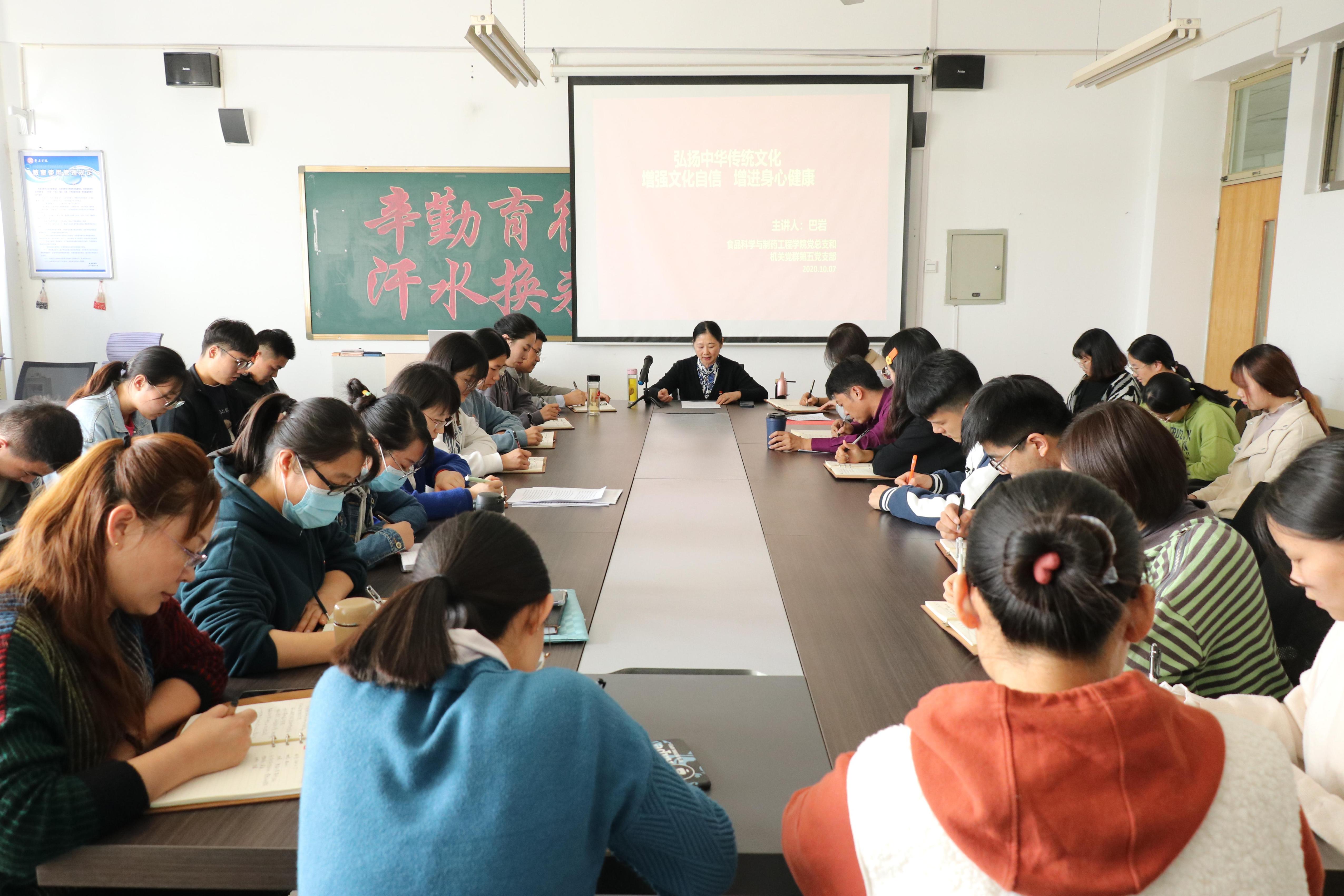 为弘扬中华优秀传统文化,助力文化自信,促进师生身心健康。10月7日下午,永利23411集团特邀学校妇委会主任巴岩作了主题为“弘扬传统文化,增强文化自信,增进身心健康”的专题党课,学院全体教工和学生党员参加了党课学习。