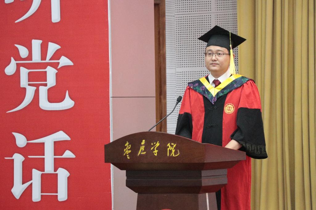 王雪山作为教师代表发言。他代表全院教师向2024届毕业生致以热烈的祝贺,深情回顾了与同学们共同成长的大学时光,细数了同学们携手并肩的美好瞬间,欣慰于同学们昔日的成长与进步,也期待于同学们未来的成功与辉煌,他勉励同学们要保持终生学习的理念和求真务实的态度,拼搏进取、积极作为,以努力奋斗成就精彩人生。