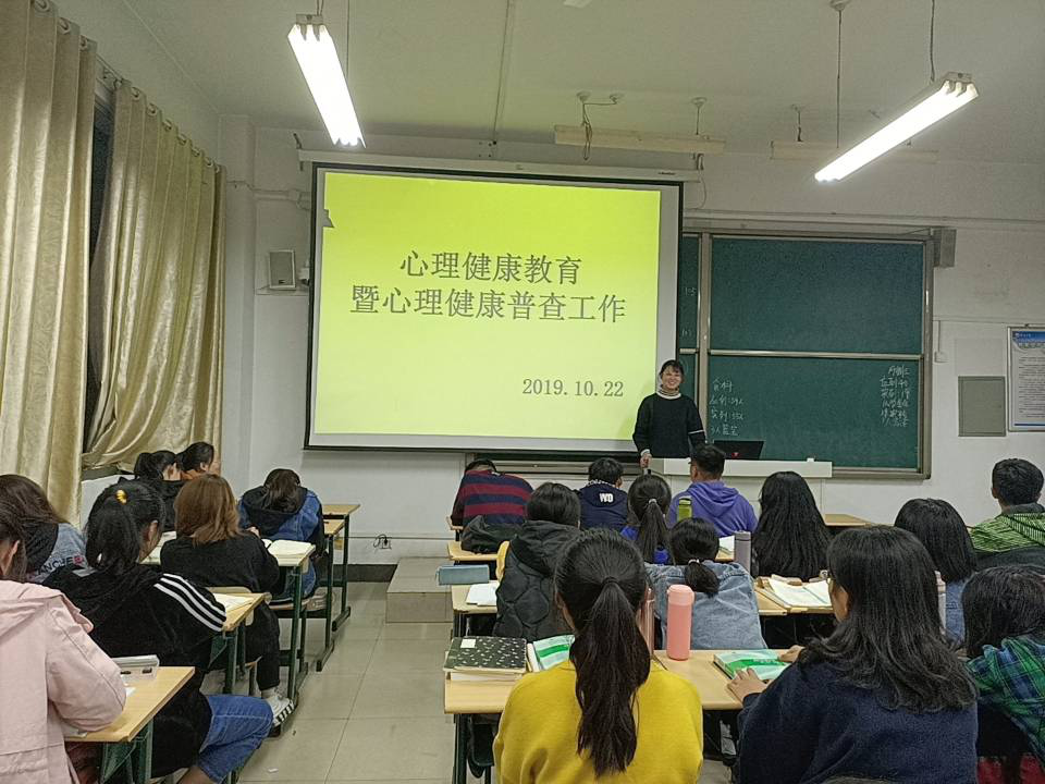 为深入了解我校学生心理健康状况,及时发现学生中存在的心理危机,根据《关于在2019级学生中开展心理健康教育和心理健康状况普查工作的通知》要求,10月22日晚,永利23411集团组织2019级开展了心理健康教育暨心理普查专题培训。