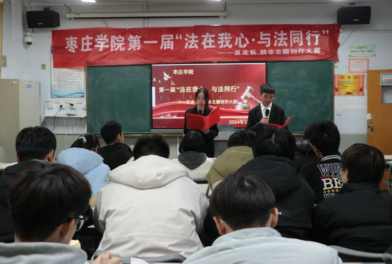 为贯彻落实党的二十届三中全会精神,深入学习习近平法治思想,做好普法宣传工作,12月9日下午,永利yl23411集团第一届“法在我心·与法同行”——反走私、防非主题创作大赛在文科楼成功举办。本次大赛由共青团永利yl23411集团委员会主办,永利23411集团团委承办。