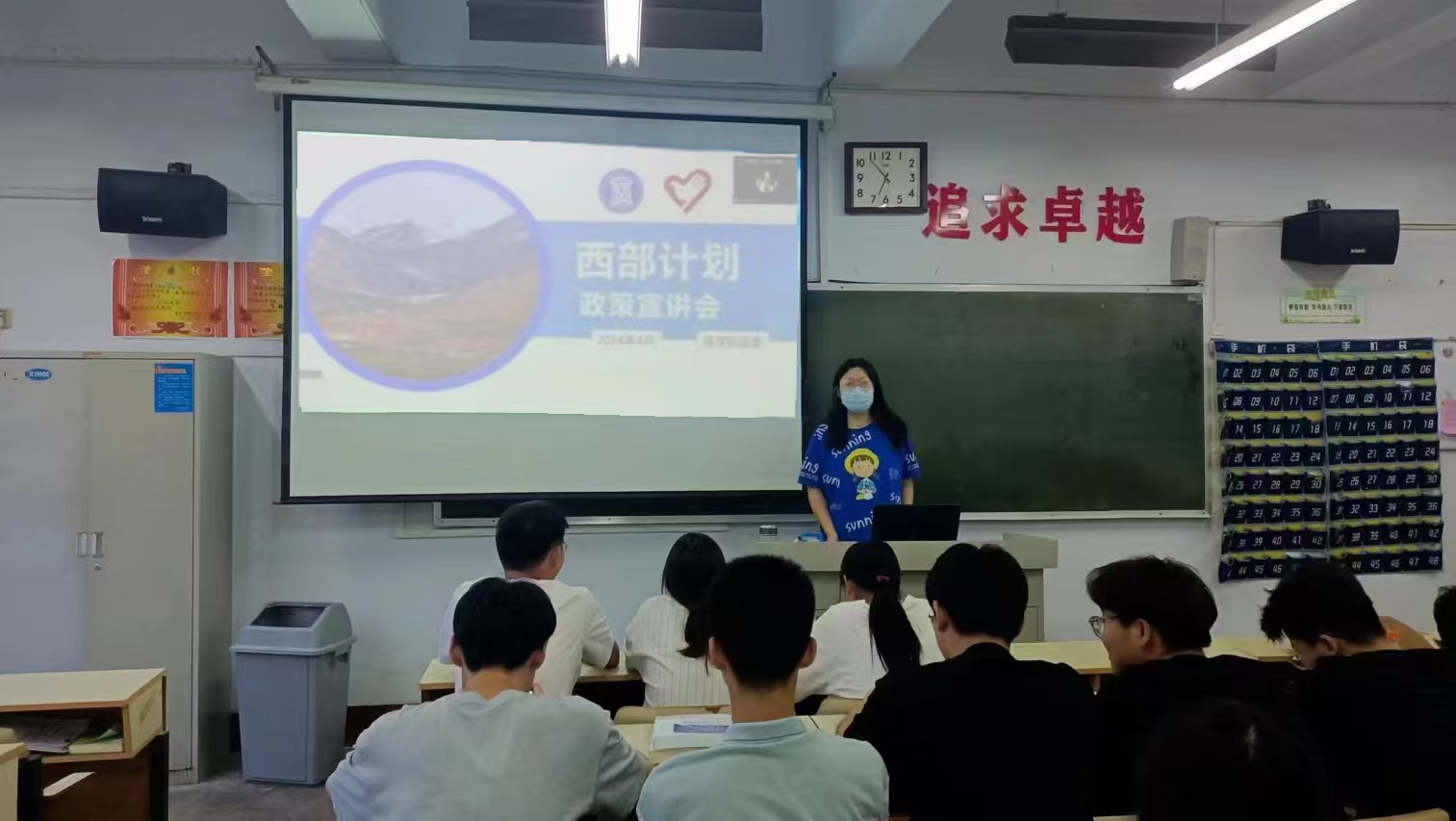 为进一步宣传大学生志愿服务西部计划项目,鼓励青年学生扎根基层、投身实践,激发同学们参与志愿服务的热情,引领更多青年加入西部计划志愿者队伍。4月18日,我院在文科楼216教室举办西部计划政策宣讲会。会议采用线上+线下的形式开展,邀请18级只茂蕊、19级赵先超两位优秀西部志愿者代表进行分享。学院专职辅导员田甜主持会议,学院学生会就业工作部部长韩烨担任宣讲人,20、21级学生代表参加。