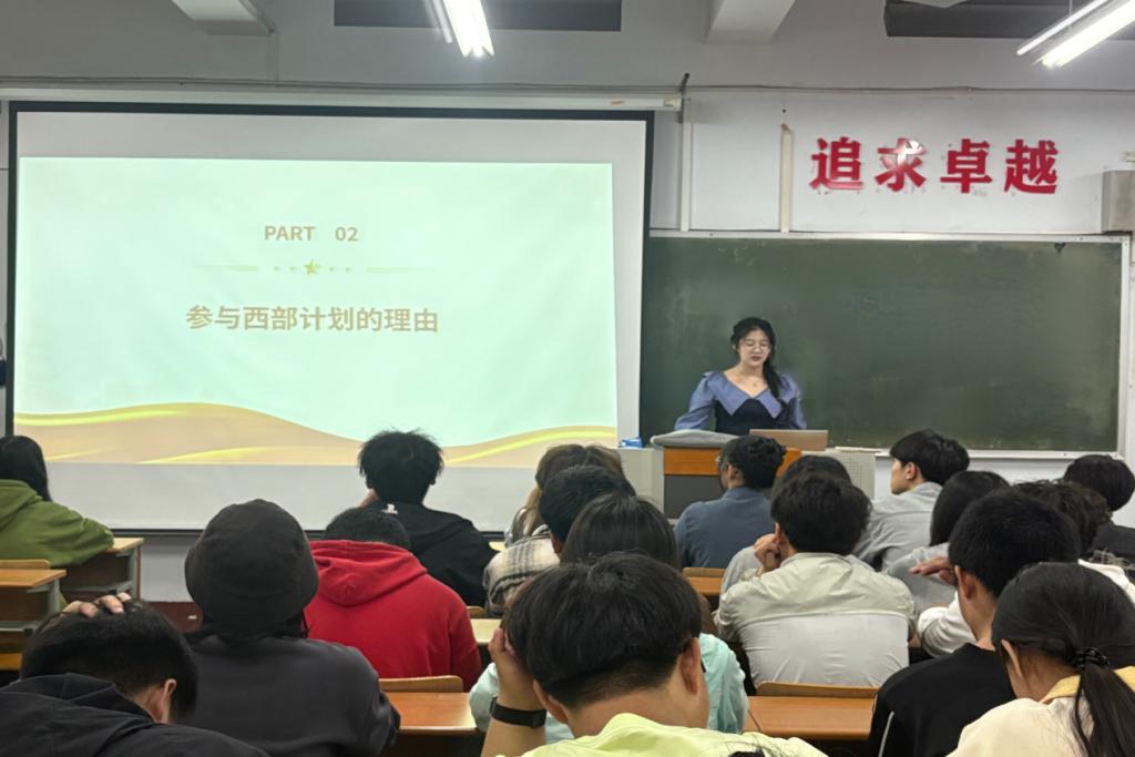 “西行”不畏山海,好青年志在四方。本次宣讲会的成功开展激励着一群怀揣着梦想与激情的同学,鼓励同学们背起青春的行囊,踏上西行的列车,到基层一线,书写自己的青春华章。以志愿之名,赴西部之约。