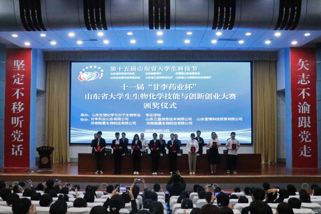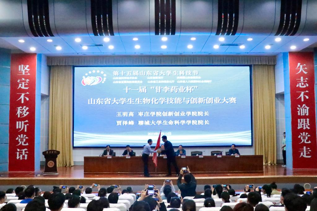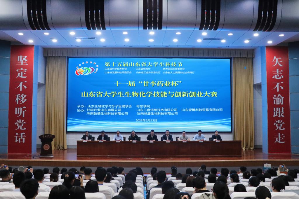 5月13日,第十五届山东省大学生科技节——第十一届“甘李药业杯”山东省大学生生物化学技能与创新创业大赛决赛在我校举行。山东生物化学与分子生物学会副理事长王林、山东生物化学与分子生物学会专职副秘书长王世立,校党委委员、副校长丰雷,甘李药业人力资源总监刘常军出席大赛开幕式并分别致辞。校党委委员、宣传部部长张昌林出席闭幕式并致辞。学校创新创业学院、永利23411集团、生命科学学院党政负责人共同出席。