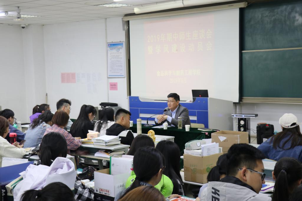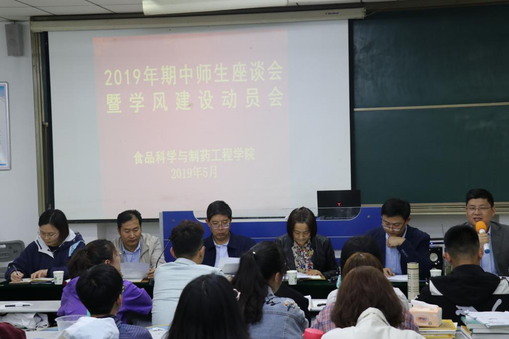 在理工楼2205教室召开2019年期中师生座谈会暨教风学风建设动员会,学院领导、教师代表、辅导员、各年级学生代表200余人参加会议。