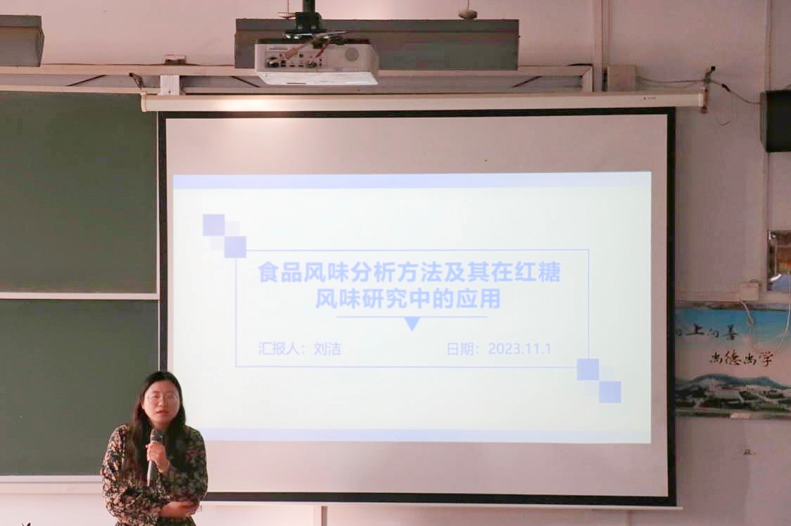 为进一步增进学术交流,拓展学院师生的学术视野。永利23411集团于11月1日在文科楼117教室举办题为“食品风味分析方法及其在红糖风味研究中的应用”的学术报告会。本次报告会由刘洁博士主讲,“石榴+植物资源团队”全体教师及2022级食品科学与工程、2023级食品科学中外合作二班全体学生参加。