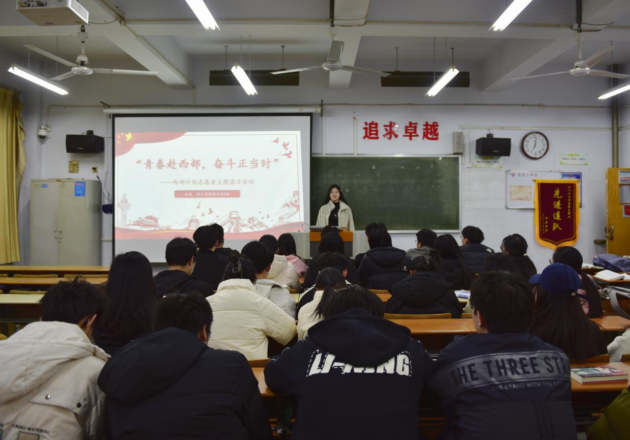 会上,宣讲人详细介绍了2025年西部计划项目开展的意义、服务内容、八大专项简介及相应选拔标准、报名方式、志愿者待遇和优惠政策等方面。同时,宣讲人结合我校的真实案例,深入分析和解读了当前西部计划志愿者的招募特点,解答了同学们关于福利待遇、服务期限等集中关注的问题。最后,宣讲人鼓励同学们积极参与到西部计划中,扎根基层,艰苦奋斗,在服务过程中拓展视野,为西部地区的发展和建设贡献自己的力量。